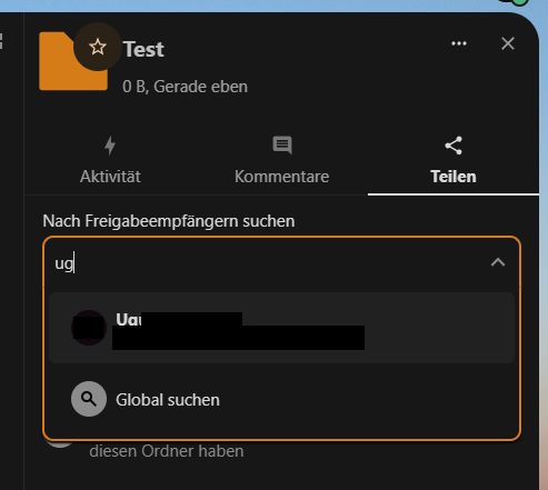 Klicke nun auf die "Ordner Teilen" Funktion. Links erscheint die Auswahl der Personen mit denen du Teilen möchtest.