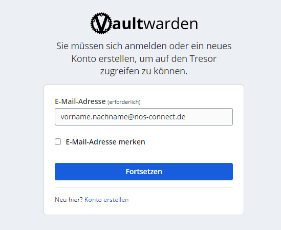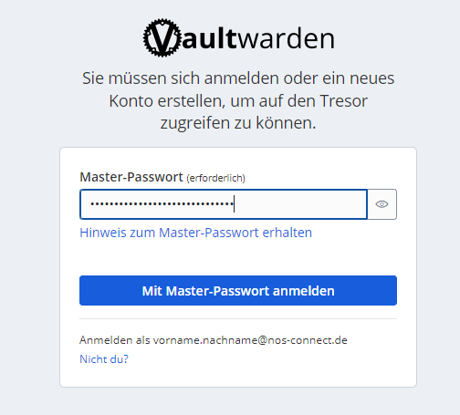 Master Passwort (min. 12 Zeichen, selbst ausgesucht)